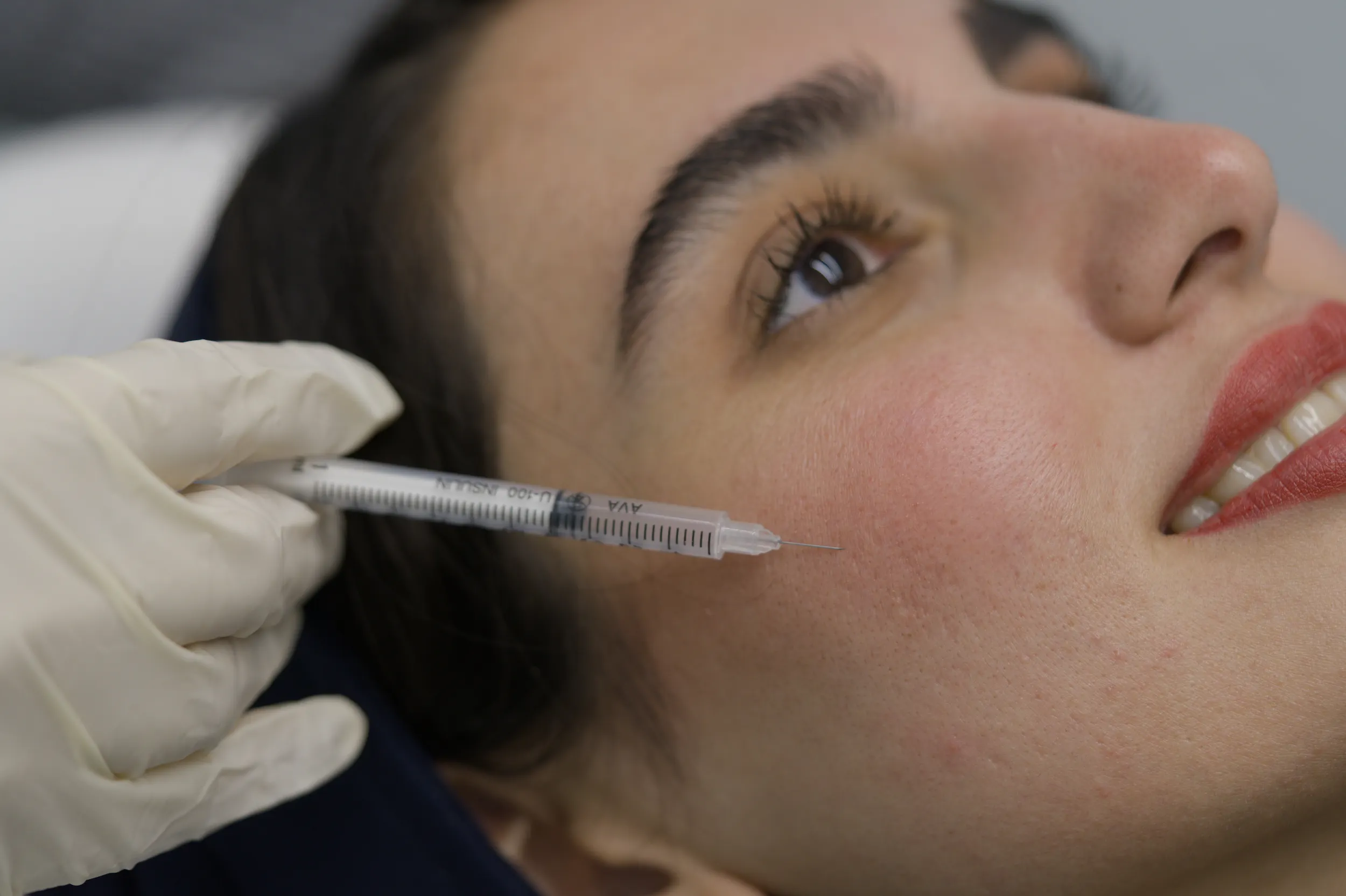 تزریق پی آر پی به پوست صورت یک زن